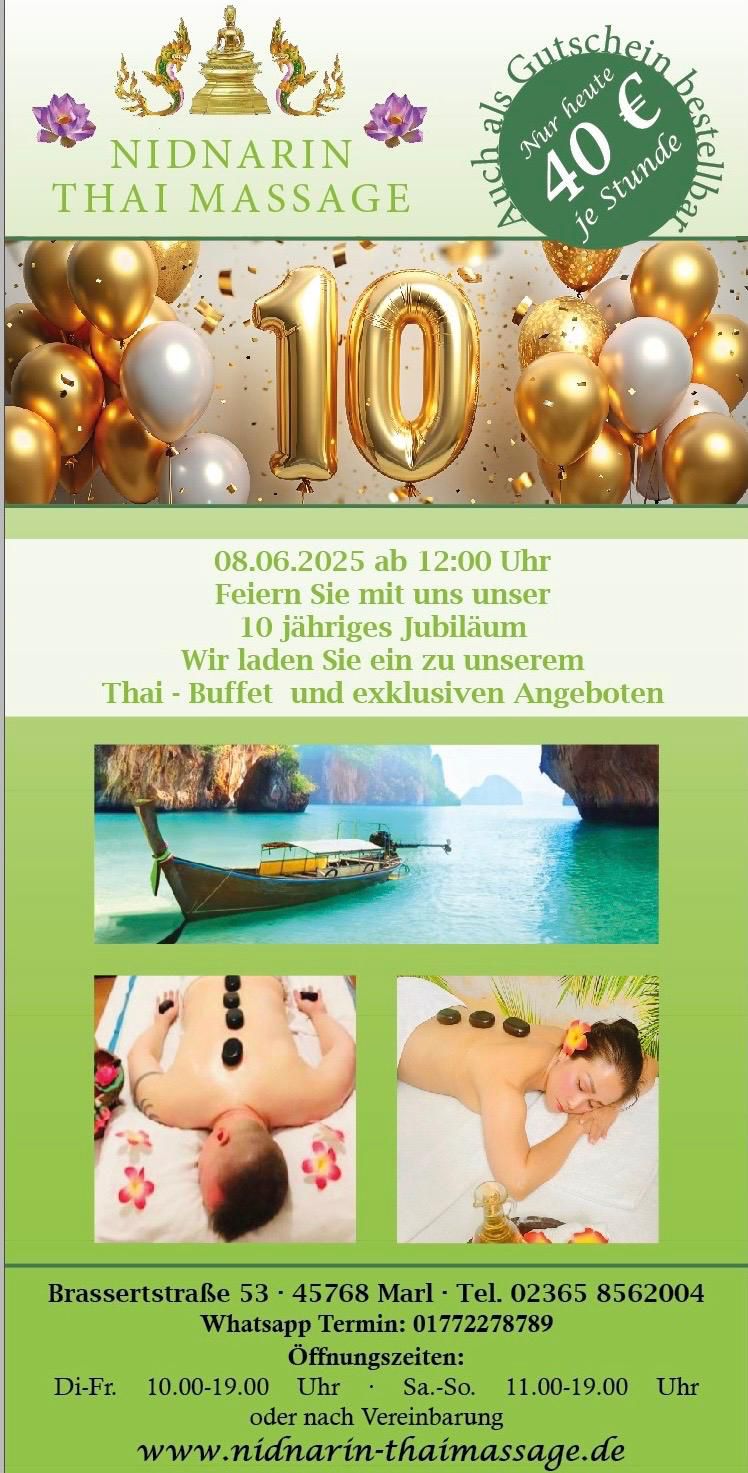 Nehmen Sie Kontakt zu uns auf und tauchen Sie ein in die Oase fur Korper und Geist. NIDNARIN THAI MASSAGE.